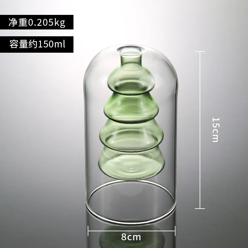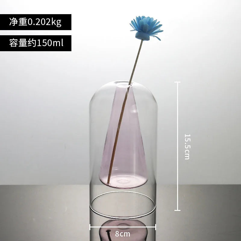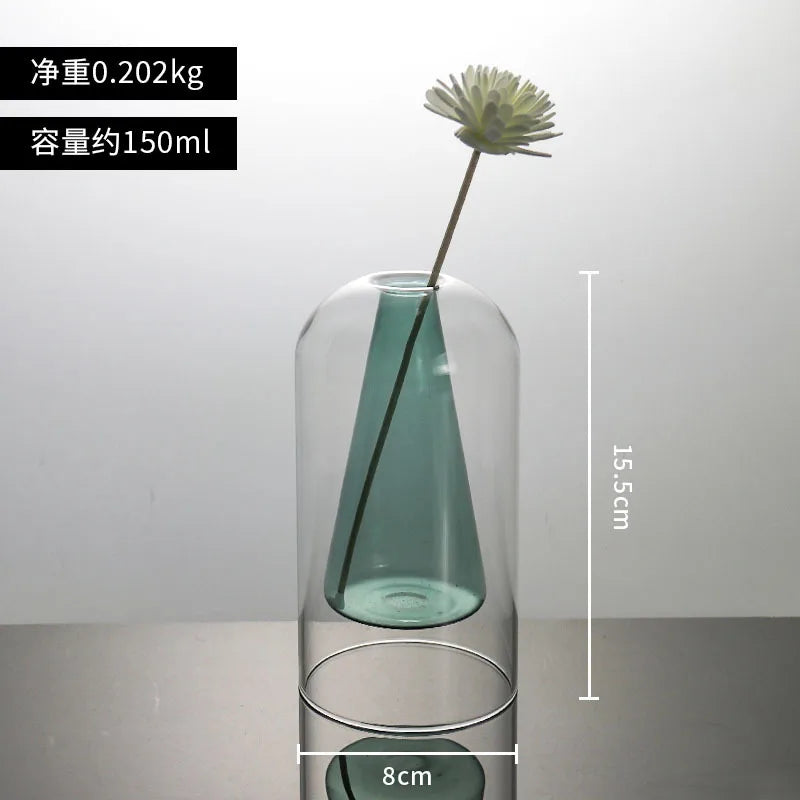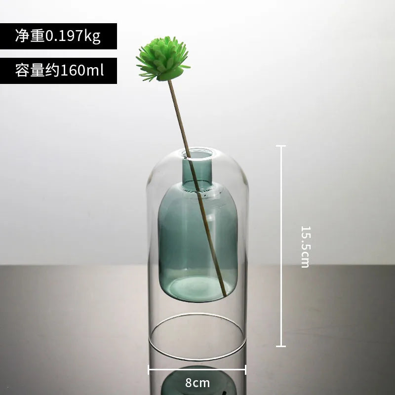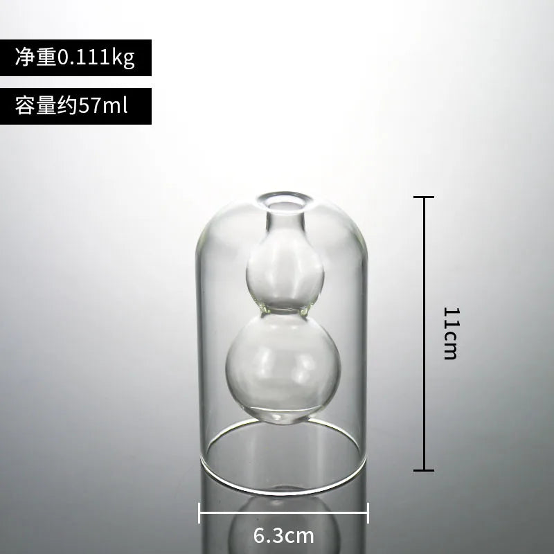 1pc Glass Vase Home Room Decor Wedding Decor Hydroponic Flower Pot Aromatherapy Bottle Double Glass Container Crafts Ornament
